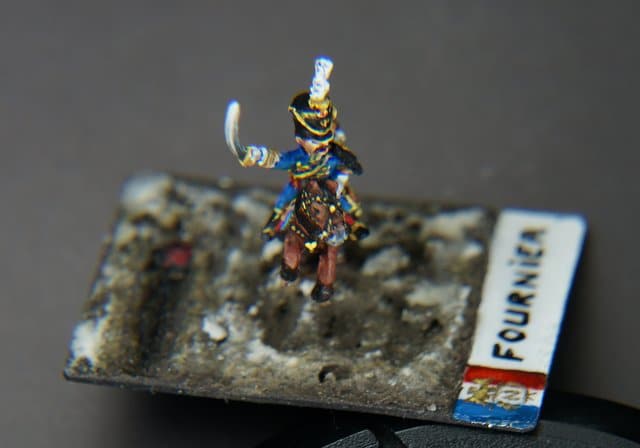 Le thème : parmi les hussards français 1° Empire certains régiments sortent du lot, c’est le cas du 5° avec son commandant historique le Colonel Meuziau. En 1814 Meuziau commande les Chasseurs à Cheval De La Garde et le 5° Hussards est confié au Colonel Baron Nicolas François Alphonse Fournier, c’est lui que nous allons représenter …